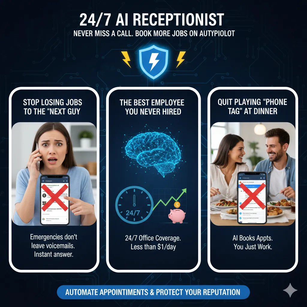 Win The "Emergency" Jobs: Customers with burst pipes or power outages don't leave voicemails - they keep dialing. Our AI answers instantly (even at 2 AM) to secure the jobs while your competition is sleeping.
